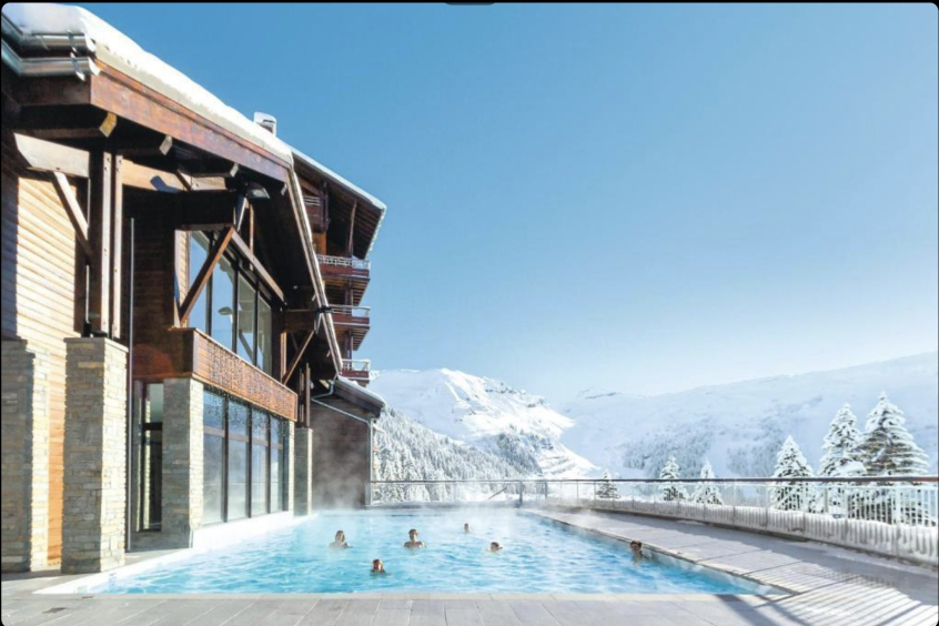 After a day in the mountains, unwind in the wellness area with free access to the jacuzzi, heated outdoor pool, sauna, hammam, and fitness room.
