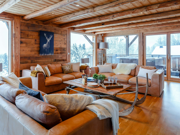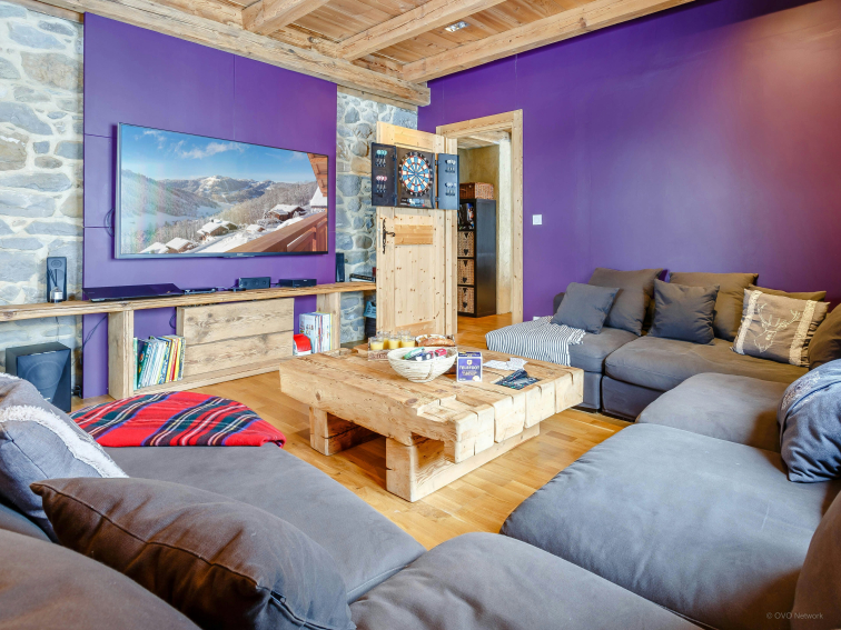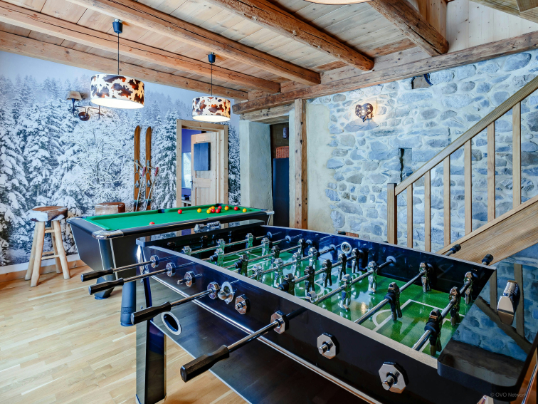 This is a perfect getaway for several family groups or a family reunion. In fact, several rooms are arranged as family suites, and equipped with their own private bathroom. Children and teenagers will be delighted. Three television areas and a fully equipped game room are available in this chalet.