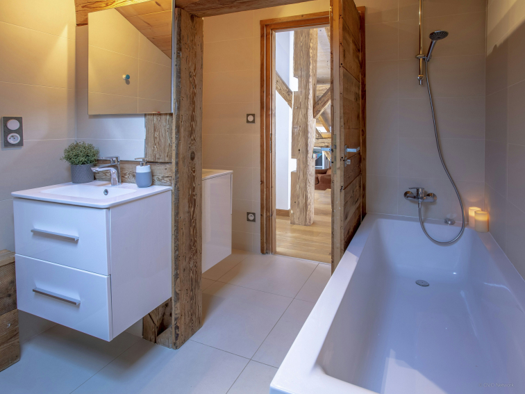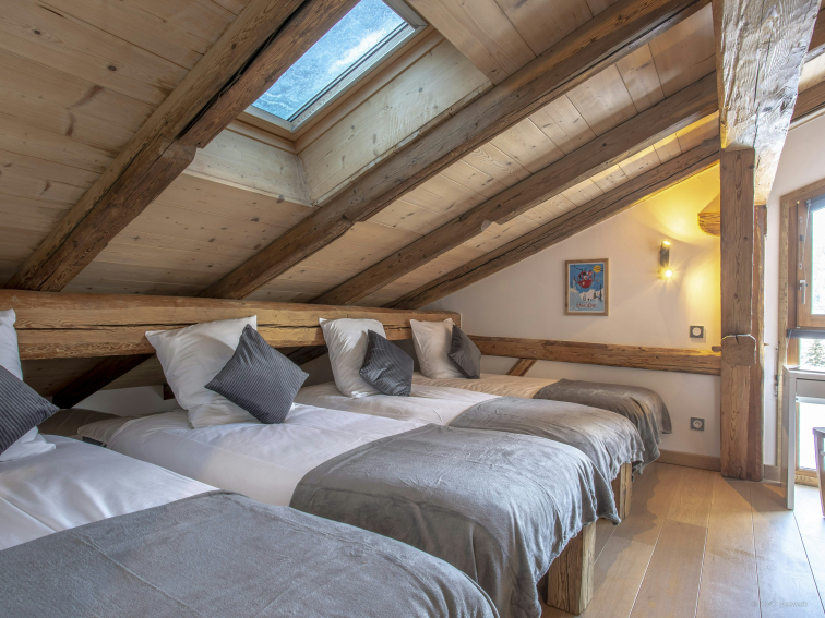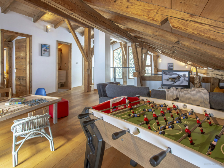 The Pativerdan chalet has four bedrooms - two doubles on the lower floor, and on the upper floor you'll find one double and one twin that sleeps four. These two rooms share a bathroom and the beds can be arranged as doubles or twins, making it possible to adapt to any situation. There is also a games room with a TV on the mezzanine, making it ideal for families. There is also a sofa bed in the playroom if you need extra sleeping space.