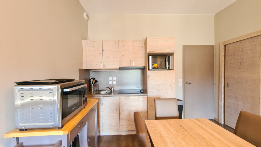 - Open kitchen with ceramic hob, dishwasher, oven and microwave