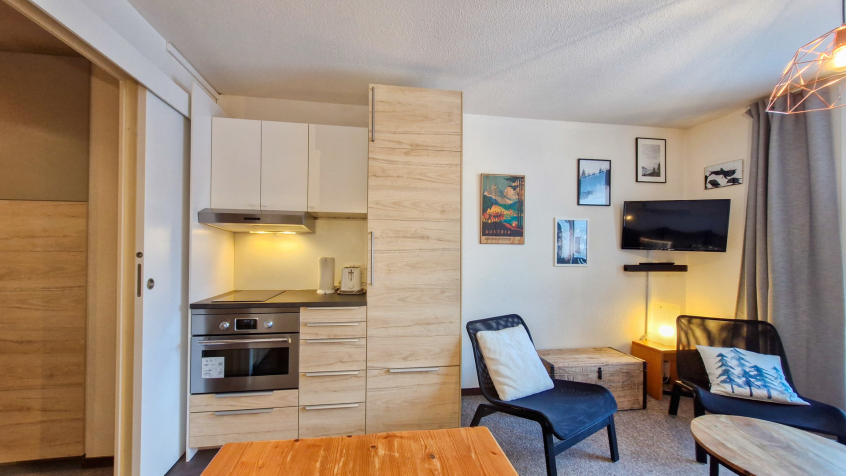 Residence located in the Flaine Forêt district, approx. 400 m from the start of the slopes and ski school meeting points, and approx. 100 m from shops. 20 m from a bus stop. Ski lockers.