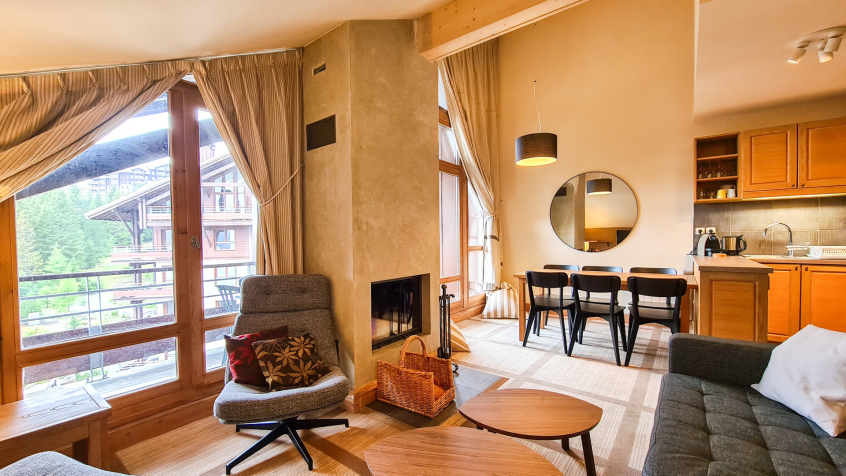 Résidence de tourisme 5 étoiles située au pied des pistes et à environ 400 mètres des commerces. Emplacements de parking couverts. Ascenseurs. Casiers à skis.