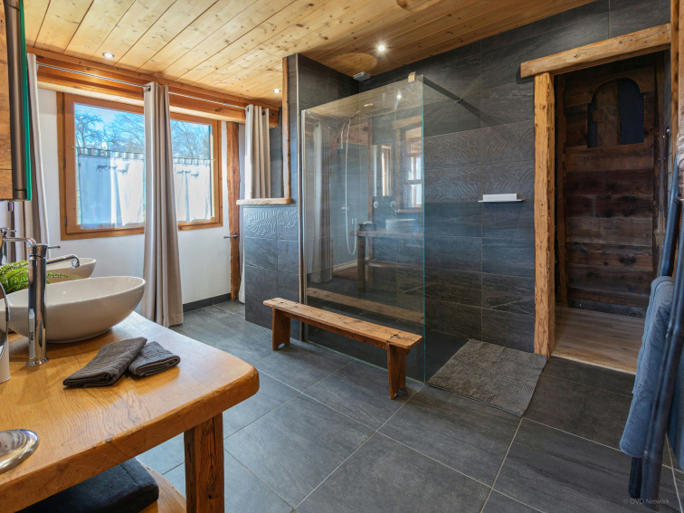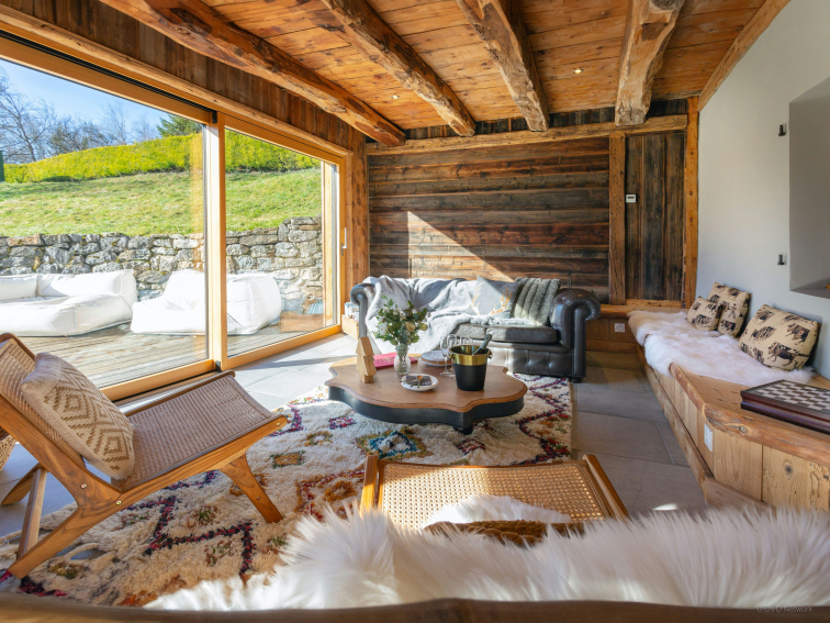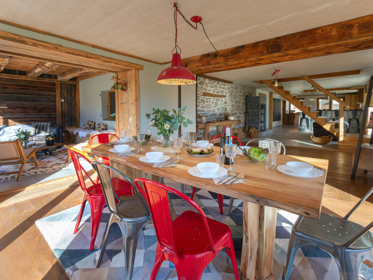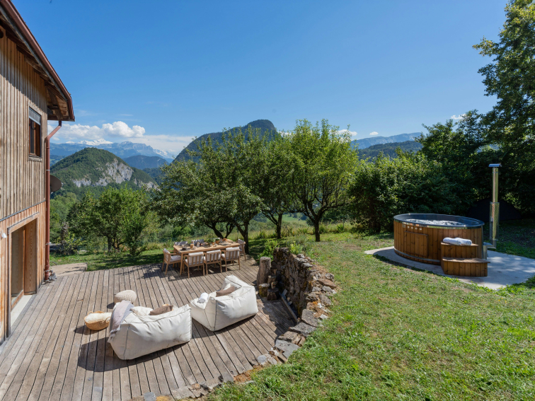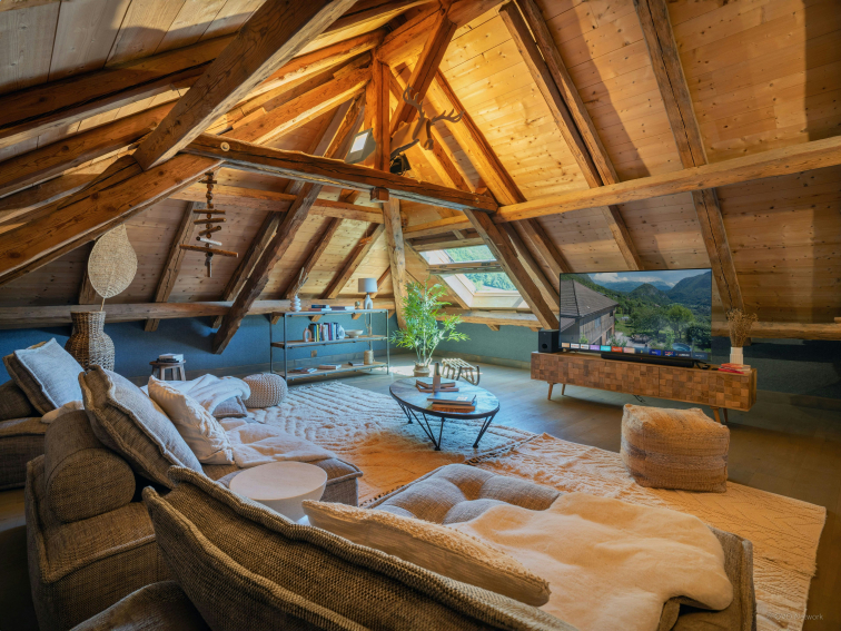 Avec pas moins de trois coins salons et une salle de télévision sous la charpente, chacun trouvera son espace de prédilection. La cuisine possède tous les appareils et ustensiles dont vous aurez besoin, et vous pourrez choisir de prendre vos repas autour de la table à manger intérieure, ou sur la terrasse aménagée, qui est également équipée d'un jacuzzi offrant une vue imprenable sur le massif du Mont-Blanc.