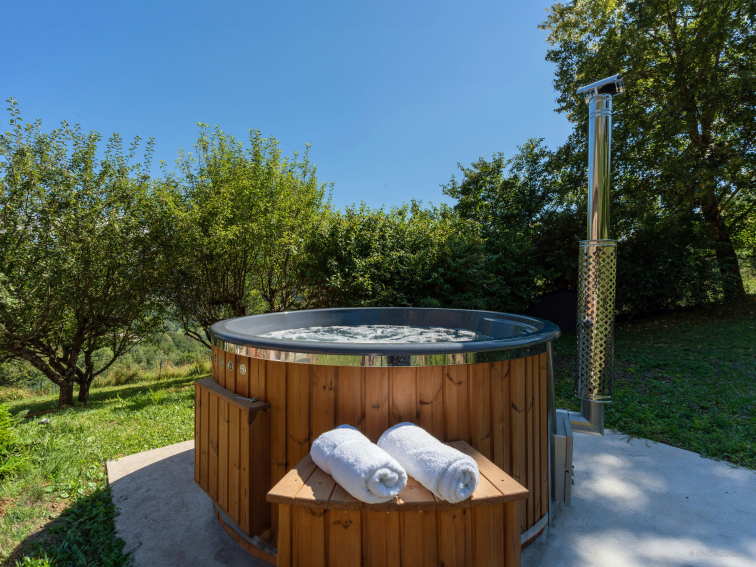 Quatre des chambres sont doubles et bénéficient d'un accès direct à un balcon. La suite parentale dispose d’une large salle de bains avec baignoire, douche et double vasque. Même si les trois autres chambres sont de dimensions plus modestes, leur décoration unique leur donne une atmosphère particulièrement chaleureuse. Elles se partagent une salle de bains et des toilettes indépendantes. Vous trouverez une chambre supplémentaire avec deux lits simples au rez-de-chaussée, ainsi qu'une autre salle de bains.
