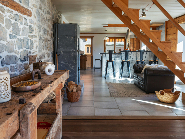 Une rénovation soignée de cette ancienne ferme a créé l’alliance parfaite du charme traditionnel et du confort moderne. De nombreuses fenêtres baignent toutes les pièces de lumière naturelle et offrent de somptueuses vues sur les montagnes environnantes.