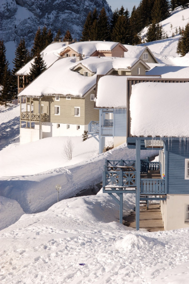 Magnifique quartier de chalets scandinaves avec quelques commerces situé au Hameau de Flaine. Piste bleue à proximité pour atteindre les remontées mécaniques et skibus gratuit pour accéder au départ des pistes et rassemblement d'écoles de ski de Flaine Forêt.