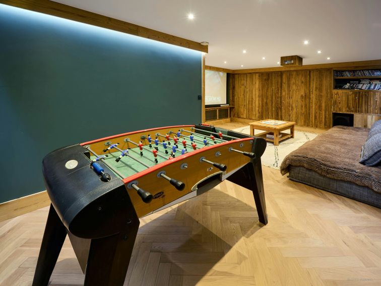 Plusieurs familles trouveront leur espace au Chalet Les Pellys, grâce à deux chambres doubles au premier étage et quatre suites familiales au dernier niveau. Tout votre groupe pourra passer des moments conviviaux dans le salon principal ou bien dans l’agréable salle de jeux / cinéma aménagée au rez-de-chaussée.