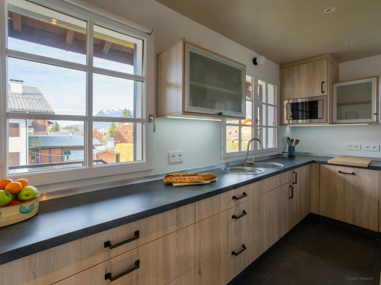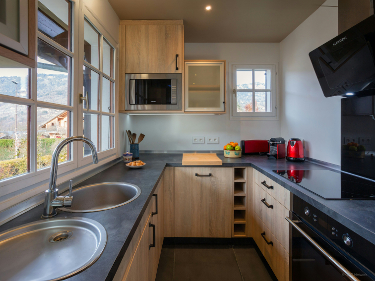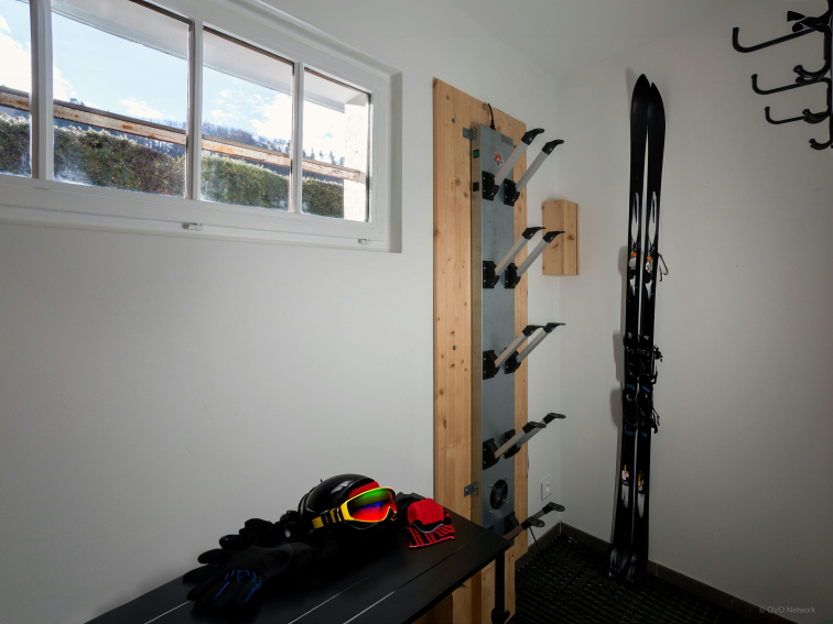Le rez-de-chaussée abrite enfin un local à skis avec sèche-chaussures chauffant, une buanderie équipée d’un lave-linge et d’un sèche-linge, ainsi qu'un garage pour deux voitures et un emplacement extérieur.