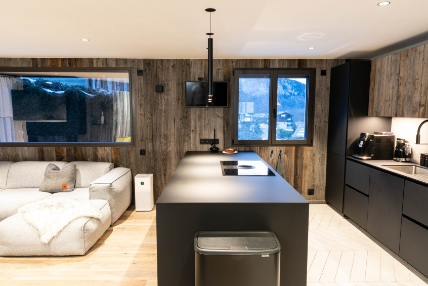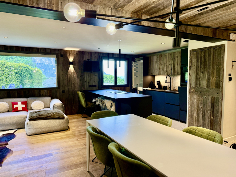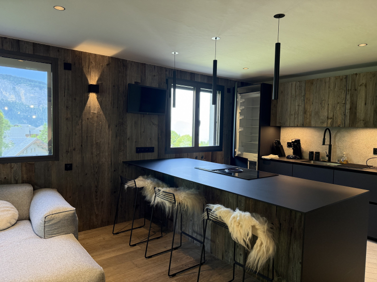 La cuisine entièrement équipée invite à préparer des repas conviviaux, du four à la raclette, pour des soirées chaleureuses au coin du feu.