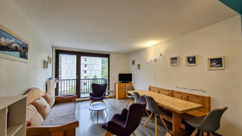 3 pièces + coin montagne confort 53 m2 au 2ème étage avec balcon Sud. Appartement rénové avec WIFI gratuit.