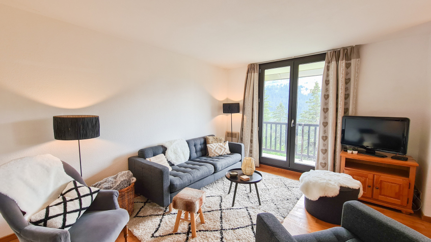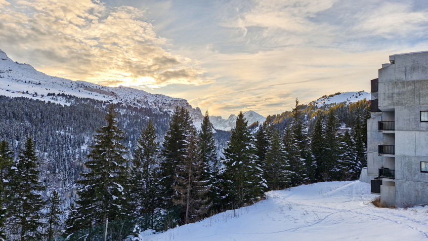 Résidence située dans le quartier de Flaine Forêt à environ 400 mètres du départ des pistes et des rassemblements d'écoles de ski et à environ 100 mètres des commerces.Un Arrêt de bus à 20m. Casiers à skis.