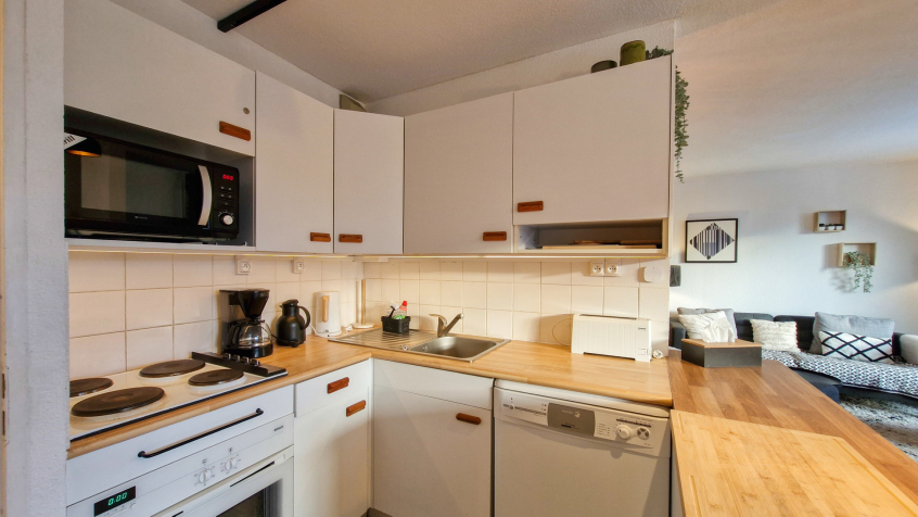 - Coin cuisine avec plaques électriques four, micro-onde, lave-vaisselle, réfrigérateur