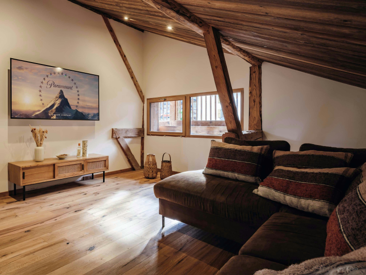 Aménagé sur deux niveaux, le Chalet Trumont accueille jusqu’à 12 hôtes (dont 10 adultes) dans cinq chambres et quatre salles de bains. Il propose un jacuzzi aménagé sur une terrasse, plusieurs salons, et le charme authentique d’une ancienne grange restaurée.